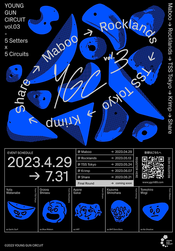 | 場所 | 各ボルダリングジム MABOO(東京都武蔵村山市) ROCKLANDS(東京都江戸川区) THE STONE SESSION TOKYO(東京都墨田区) Krimp(東京都大田区) Share(神奈川県横浜市) |